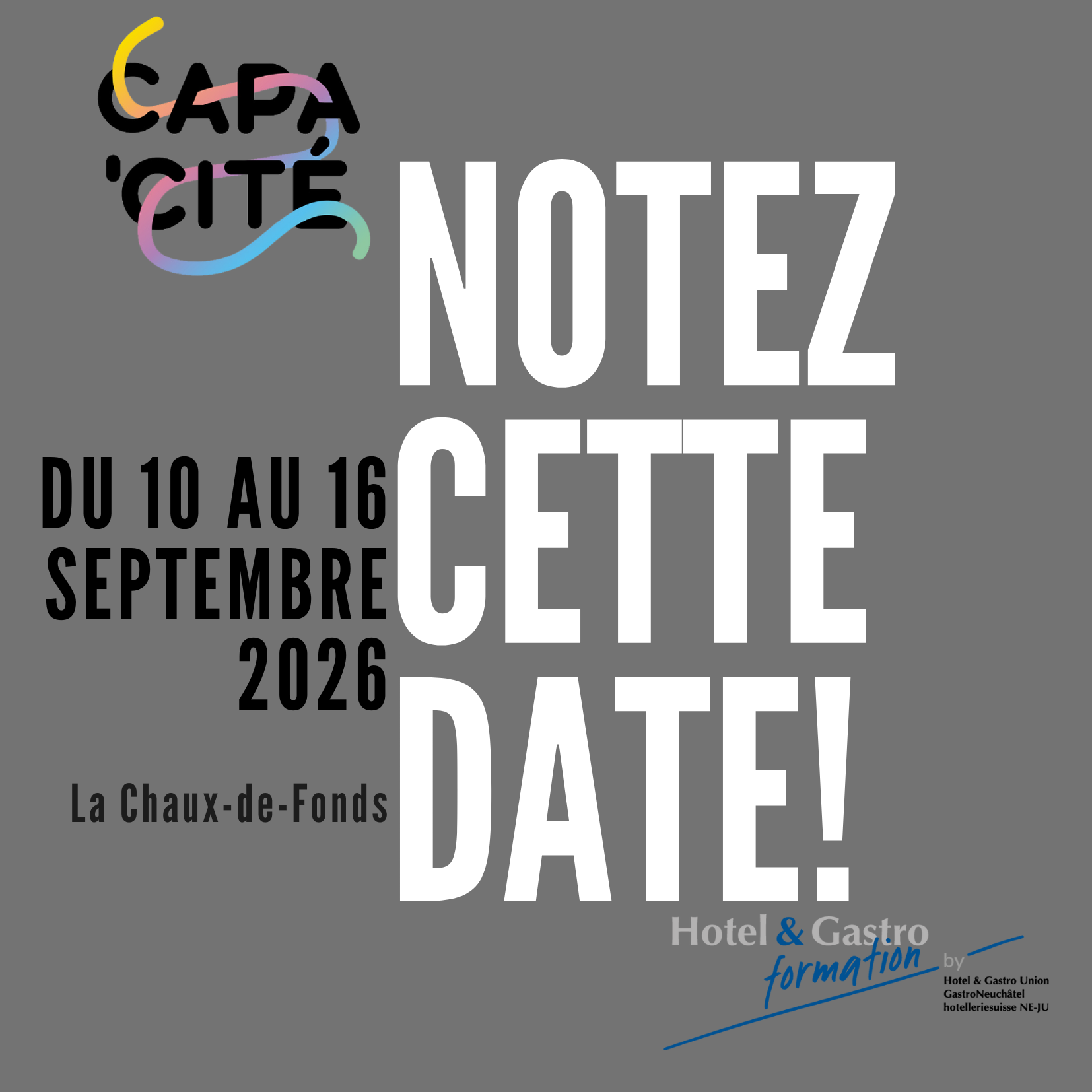 CAPA’CITÉ Le salon des métiers Du 10 au 16 septembre 2026, à La Chaux-de-Fonds